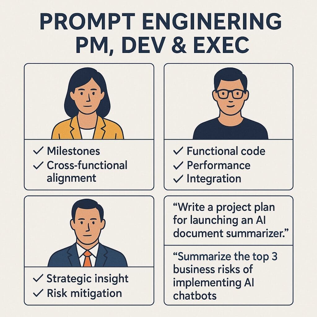 Learn how to tailor AI prompts for each role in your organization—executives, PMs, and developers—to get smarter, faster results from AI tools like ChatGPT and Microsoft Copilot.